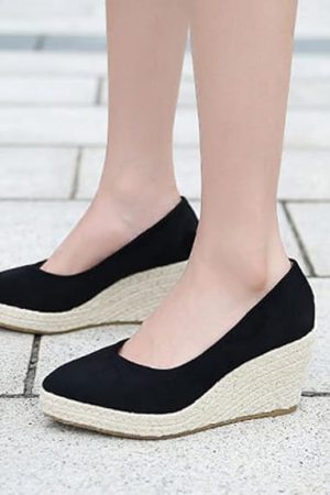 Women versatile black woven shoes