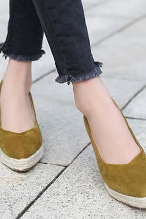 Women pointed yellow woven shoes